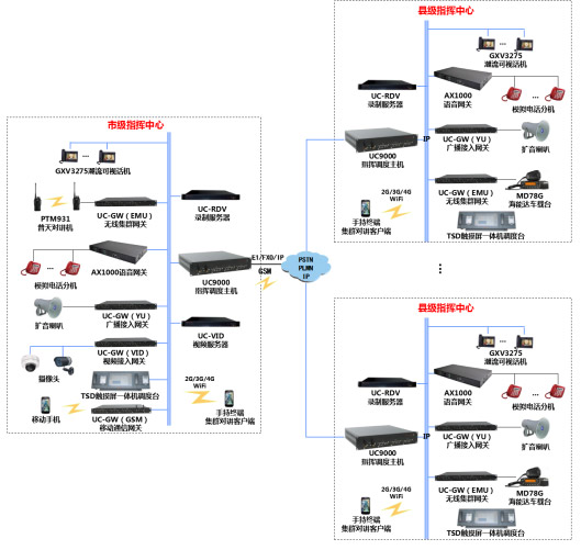 ——指揮調度系統匯聚各種終端,包括專網話機、公網固話、IP電話和移動終端、可視終端、集群終端、無線對講機、音響擴音終端等,實現各種終端的語音互通。