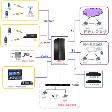 2.將普通電話、手機(jī)(GSM/CDMA/3G)、IP電話、無線對(duì)講終端等集成到綜合指揮調(diào)度機(jī)中,實(shí)現(xiàn)統(tǒng)一調(diào)度管理。