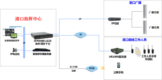 由于港口工作存在諸多特殊因素,工作復(fù)雜,所以專業(yè)調(diào)度通信系統(tǒng)就顯得非常重要。除必須建立的對(duì)講機(jī)通信系統(tǒng)外,還必須將其他通信系統(tǒng)融合起來(lái),實(shí)現(xiàn)各個(gè)部門的不同通信終端的互聯(lián)互通。