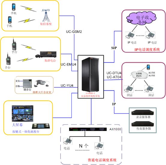 ——應(yīng)急指揮系統(tǒng)匯聚各種終端,包括專(zhuān)網(wǎng)話(huà)機(jī)、公網(wǎng)固話(huà)、IP電話(huà)和移動(dòng)終端、可視終端、集群終端、無(wú)線對(duì)講機(jī)、音響擴(kuò)音終端等,實(shí)現(xiàn)各種終端的語(yǔ)音互通。