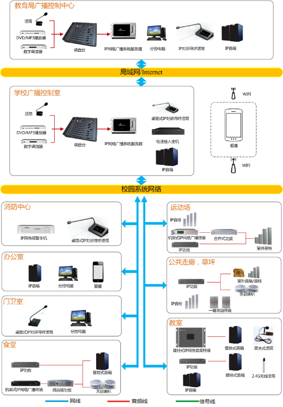 語(yǔ)音考試、多媒體教學(xué)、廣播通知、定時(shí)打鈴等。